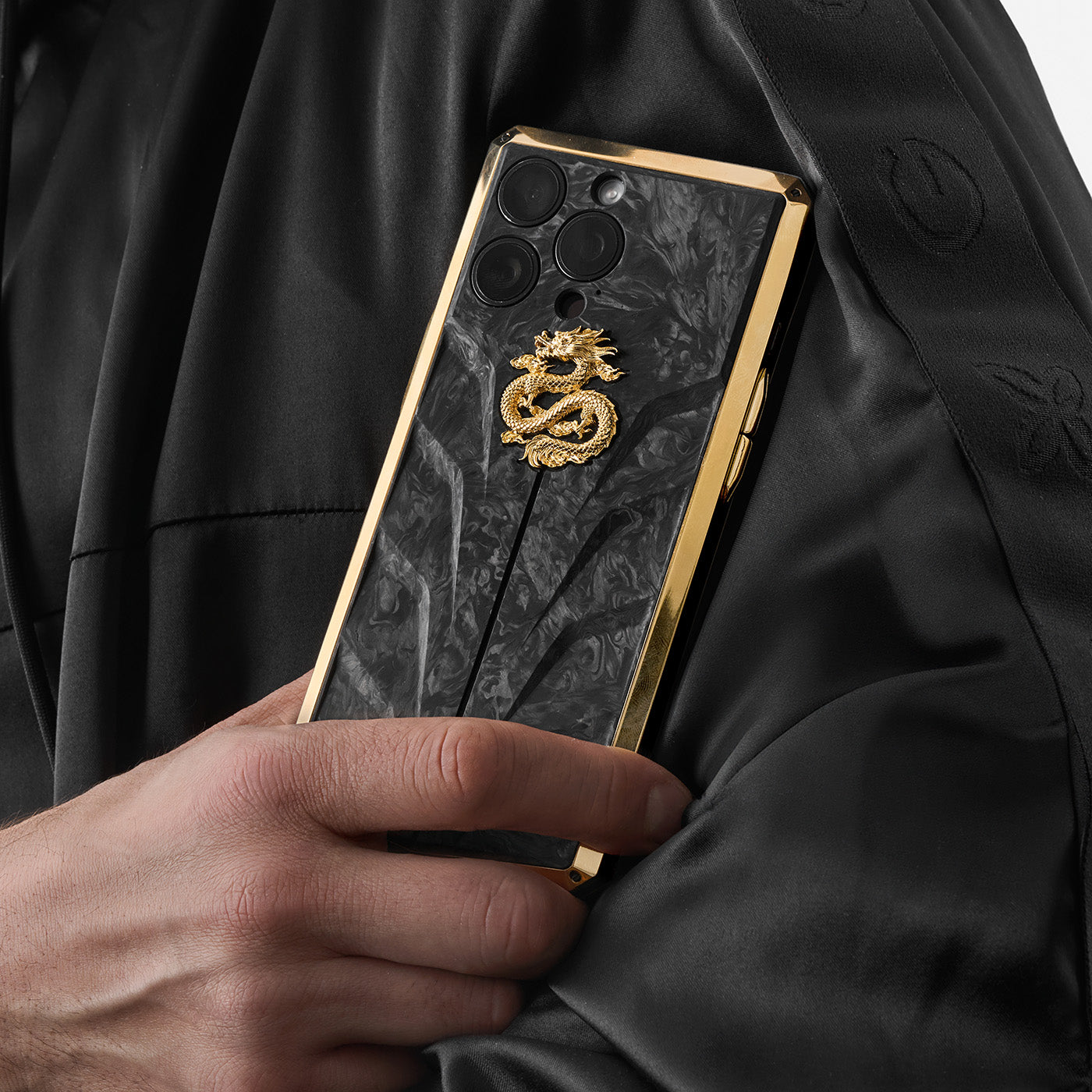 Golden Concept's exclusive phone case, adorned with a majestic golden dragon, celebrates the Year of the Dragon. Crafted with unmatched precision and extraordinary attention to detail, this masterpiece showcases luxury craftsmanship at its peak, marking a tribute to tradition and innovation for the truly discerning.